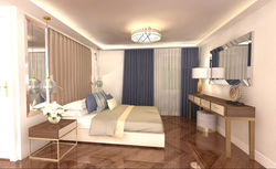 Design of a luxury bedroom, project in progress, shows different design options. Whilst colour scheme remain the same, there are design details that create a different impact on the space.